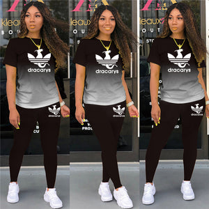 Tracksuits Women 2 Pieces Sets short Sleeve O-Neck Pullover Top Trousers Sportswear Sports Suit Female Clothes Spring 2021 New